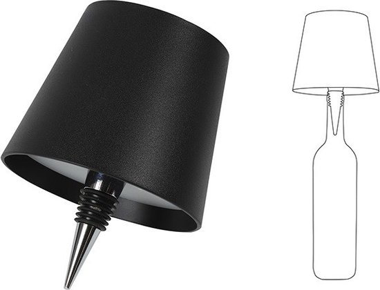 Flessenkurk met LED – Flessenlamp Touch – Zwart – 13 x 10,5 cm
