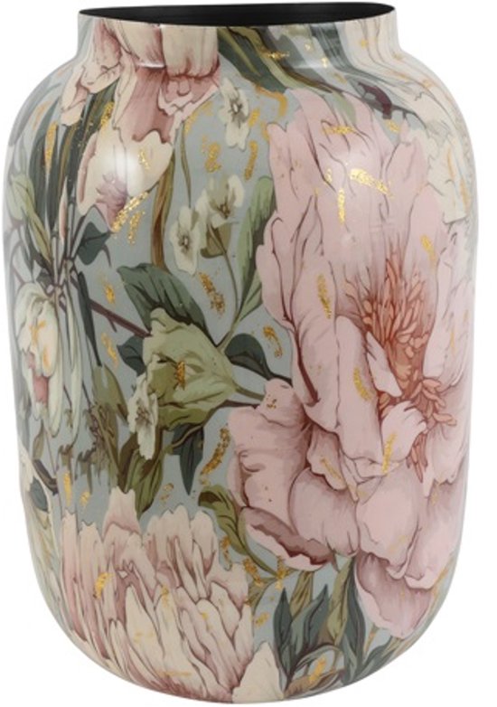 Vaas Peony van metaal – Roze/Wit – Ø31 cm – Hoogte 41 cm